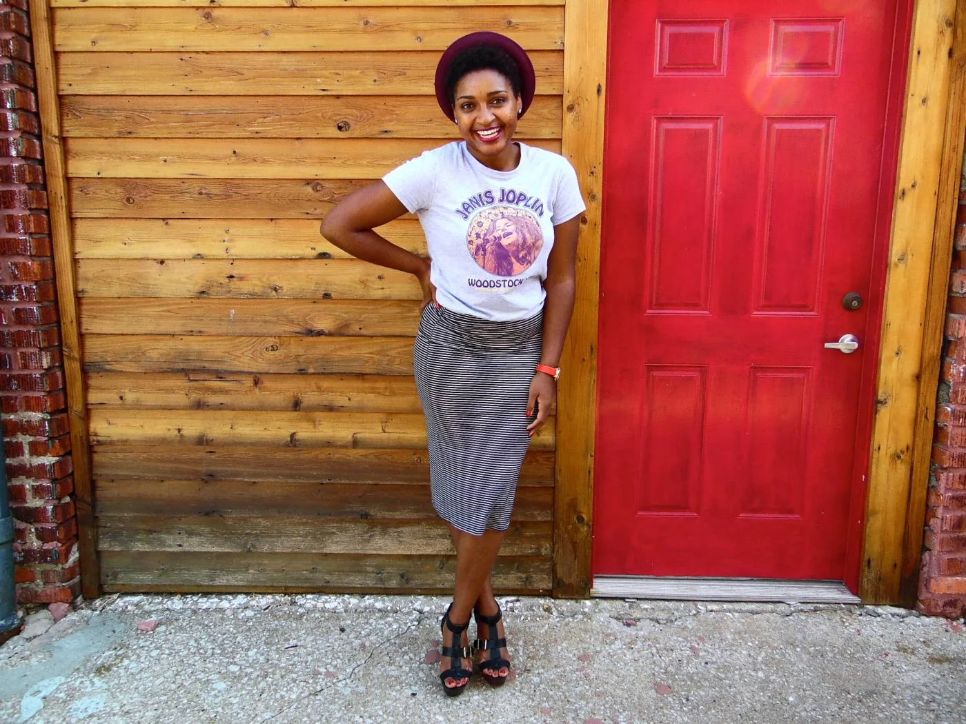 Woodstock T-shirt + Stripe Pencil Skirt