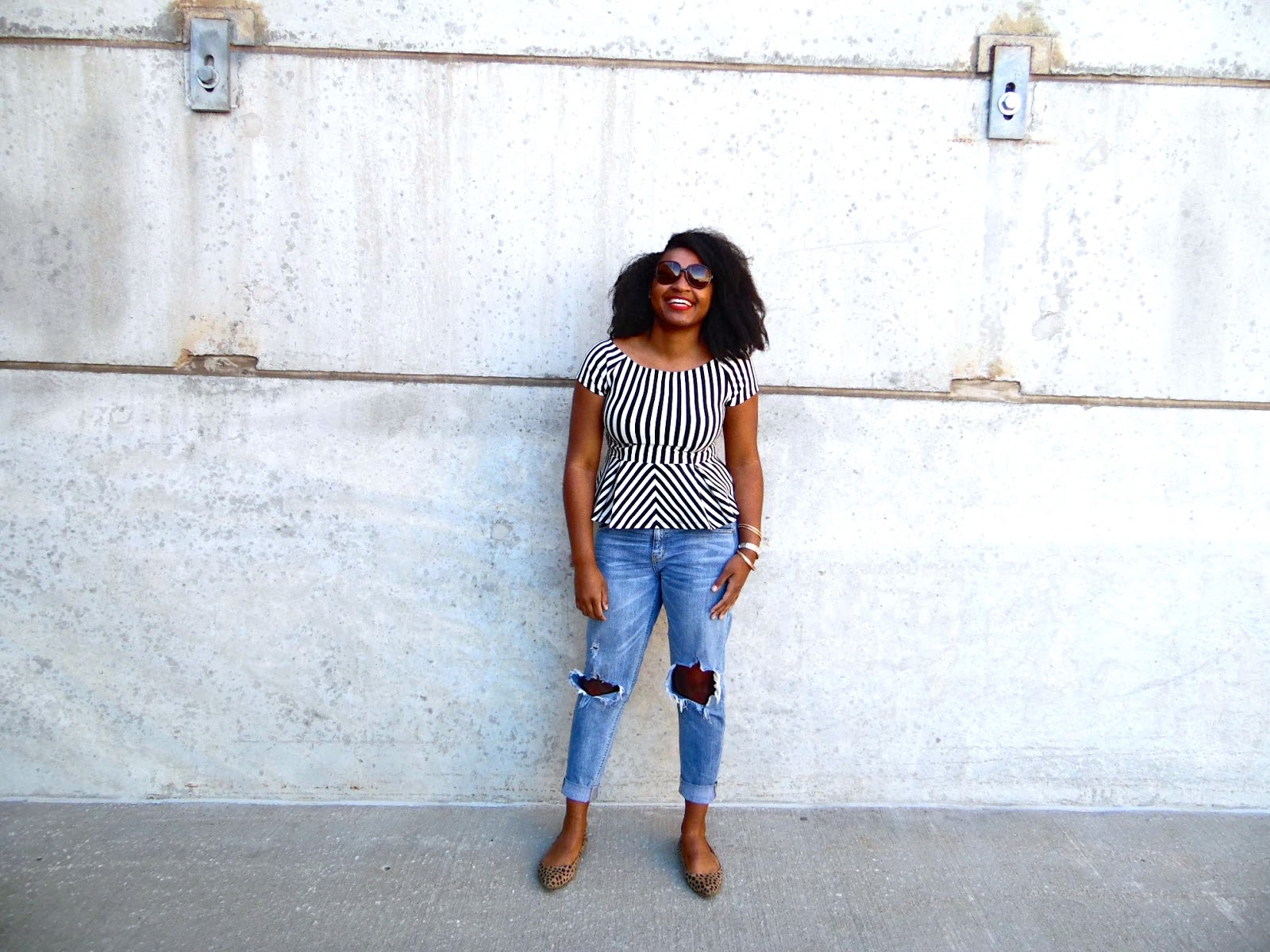 Stripe Peplum Top + Distressed Skinnies Style Apr 14 Written By jasmine diane Top: Forever21 // Jeans: Target // Shoes: Old Navy All About JasBlack bloggersCasual style jasmine diane