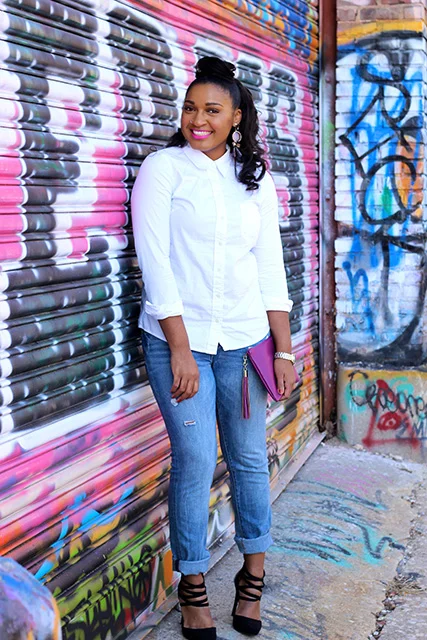 I love skinny jeans as much as the next person, so I thought that it would be helpful to show various ways to style distressed skinny jeans with HayQueen.com Editor-in-Chief, Ieshia. She's such a joy to be around + drop dead gorgeous.